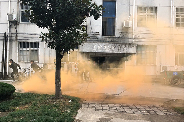消防讲座之外,为加强师生面对突发事件,及时应对避险,提高自救能力。11月16日,生命科学学院邀请了校保护处消防科科长王健作指导,在男生宿舍4号楼举行了一场生动的消防演练活动。活动开始前,工作人员向担任安全引导员的同学强调了引导员的重要性,不仅要有远离危险的意识,更要了解在突发情况下如何紧急疏散和逃生。之后,随着紧急警报拉响、消防演习烟雾释放,整栋宿舍楼迅速进入紧急疏散状态,引导员第一时间就位。同学们用湿毛巾捂住口鼻,按照引导员指引的疏散线路,快速有序撤离。撤离到安全地带后,工作人员现场对撤离过程进行点评。整个过程紧张有序,参与的师生均表示对火灾应急有了切身感受。