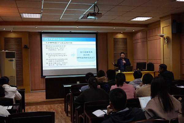 褚建勋从公共管理的实际案例出发,阐述了MPA教育的定位与要求,分析MPA学位论文写作中存在的问题及面临的挑战,并就MPA论文案例研究方法及如何做好案例研究进行探讨。褚院长运用实例,从切身经验出发,循循善诱、发人深省,为MPA学位论文的撰写提供新思路。报告会后,与会者就如何确定案例研究的选题等与褚褚建勋进行了热烈地讨论与交流。