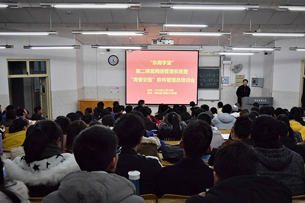 12月20日下午,校团委在琦元楼1号楼301教室举行“东南学堂”第二课堂网络管理系统暨“青春安医”软件管理员培训会。各二级团组织书记、学校相关职能部门工作人员、2018级团支书、班长及学生会骨干成员参与了本次培训。