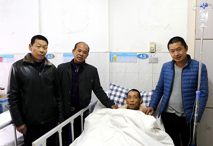 在救治老人的同时,该院医护人员还积极通过微信平台、警方和媒体帮助老人寻亲。3月14日,老人的哥哥和两个侄子从老家湖南赶到巢湖,来到ICU病房。见到了多年未见的亲人,老人激动得泪流满面,他的哥哥和侄子也情绪激动,一家人相拥而泣。看到他们久别重逢,医务人员也替他感到开心。