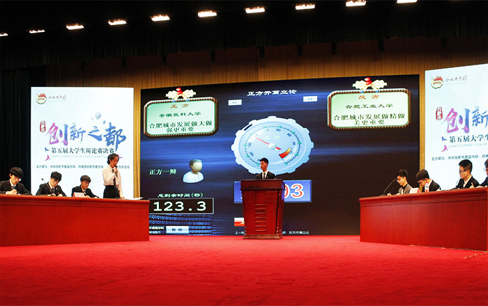 决赛现场,我校和合肥工业大学学生围绕“合肥城市发展做大做强更重要,还是做精做美更重要”的辩题,引经据典、针锋相对,展开激烈辩论。尤其是我校2017级生物技术专业王浩同学作总结辩词时,从合肥作为安徽省会,长三角城市群的副中心城市,在周边地区发展中的使命与责任,延伸到当代大学生的社会责任与担当,引起台下观众强烈共鸣,博得满堂喝彩。参与此次活动,引发了同学们对于现实生活、城市发展、人民向往和个人责任的积极思考,充分展现了我校学子奋斗向上的青春姿态。