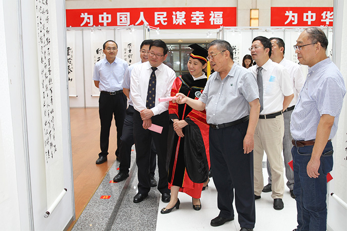 6月23日上午,“明阳抗疫诗书展”在我校举办。省文联主席、省书法家协会主席、著名书法家吴雪,原省委教育工委委员、省教育厅总督学、国家督学,著名书法家李明阳受邀出席活动。校党委书记顾家山主持活动并向吴雪、李明阳颁发了收藏证书,校长曹云霞出席活动并致辞。校党委副书记刘群英、副校长肖圣龙出席活动。