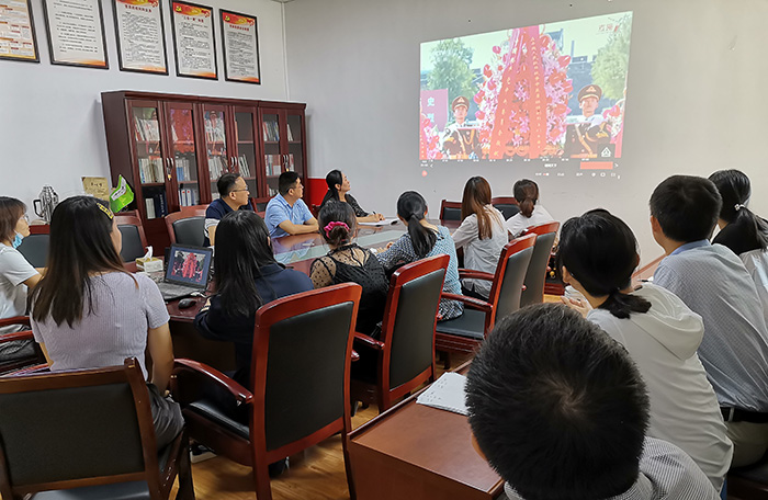 因为有手术安排,第二附属医院整形外科党支部书记李红红利用手术接台间隙,和同事一起观看直播进行学习。“今天是中国人民抗日战争暨世界反法西斯战争胜利75周年纪念日。身处在和平时代的我们,现在的生活没有硝烟,也无须惊恐周围枪声炮鸣,是因为我们的背后,有一个强大的祖国!是不屈不挠的革命先烈用热血缔造的强大祖国!我们缅怀先辈,致敬那场永不妥协的抗争,中华儿女,勿忘国耻!铭记历史,吾辈,当自强!”