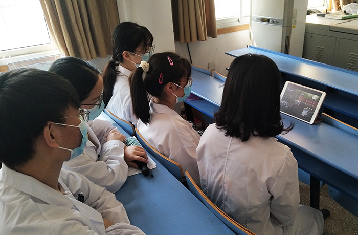 除在图书馆报告厅收看仪式直播外,我校广大师生医护员工还在会议室、教室、宿舍及各附属医院科室等地观看了直播。 学校分布在全国8个省市的50多家研究生培养单位同频共振,也组织研究生收看了向抗战烈士敬献花篮仪式直播。