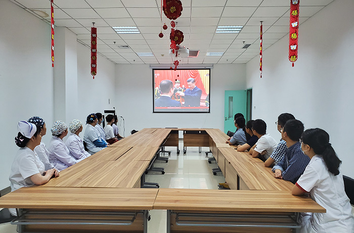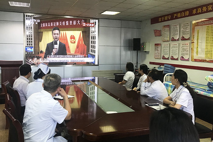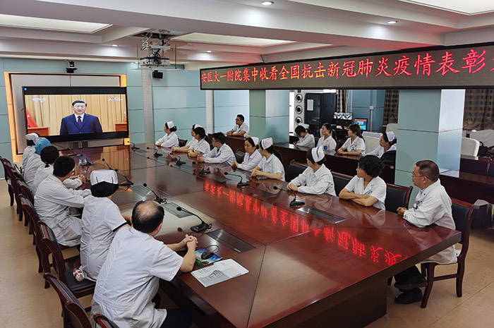 据悉,我校各附属医院也积极组织医护人员收看了表彰大会的直播,安徽新闻联播、合肥新闻联播在一附院收看直播的会场作了现场报道。