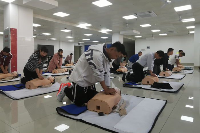 揭牌仪式后,安医大工作站开展首届救护员培训。本次培训对象包括人文医学院体育教师和学校部分本科生代表100余名,培训课程分为红十字运动基本知识救护新概念、心肺复苏理论及常见急症、创伤救护理论及实操练习、常见急诊、意外伤害、突发事件和心肺复苏实践操作等。培训还对培训学员进行了现场考核,考核合格者颁发红十字会救护员证。