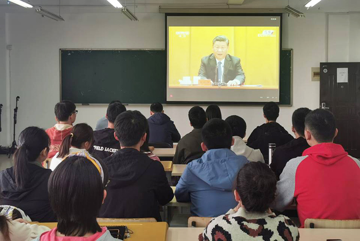 校团委副书记贾伟华说道:“作为高校教育工作者,我们要坚持立德树人根本任务,深化学生的理想信念教育,加强思想政治引领,激发青年大学生成才报国、永远跟党走的坚定志向,让他们把个人追求与国家前途命运紧密结合起来,传承不忘初心、勇于担当的奋斗精神,努力实现德智体美劳全面发展,成为社会主义合格建设者和接班人,为实现中华民族伟大复兴的中国梦不懈奋斗。”