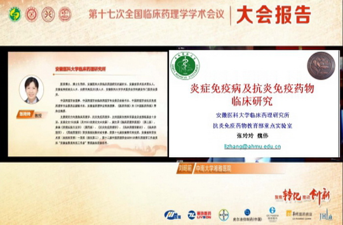临床药理研究所魏伟教授受组委会邀请主持开幕式,并作了题为《新冠病毒感染性疾病流行期间用药考虑和临床药理转化研究》大会报告。副所长张玲玲教授受邀作《炎症免疫病及抗炎免疫药物临床研究》的大会报告并主持闭幕式。