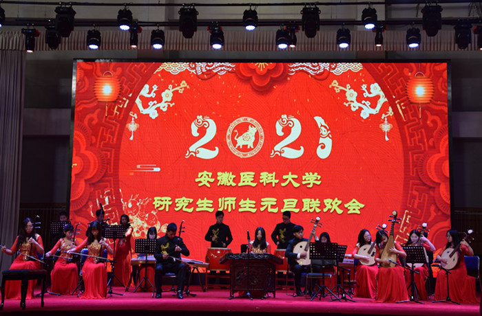 伴随着大学生民乐团《夜深沉》的民乐合奏声,元旦联欢晚会拉开帷幕。生物医学工程学院带来的舞蹈《茉莉花开》,用灵动的身姿舞出安医大人的花样年华。卫生管理学院、护理学院、第二临床医学院(第二附属医院)、第一临床医学院(第一附属医院)、公共卫生学院分别带来的舞蹈《战“疫”》《生命》《我们在一起》《大鱼》《记“疫”》,反映了“人民至上、生命至上”的崇高理念,歌颂了疫情当前,全国人民共克时艰,在各自岗位上发光发热,体现出青春的力量与担当,表达了勠力同心、携手必战疫情的情感。口腔医学院、生命科学学院分别带来的歌舞《逆行者》《坚信爱会赢》,展现了为了拯救生命与死神赛跑、与疫情抗争的逆行者,用勇敢的牺牲精神临摹出的一幅幅壮丽又动人的画卷。马克思主义学院带来的舞台剧《你好吗》,生动地展示了面对疫情,广大医护工作者写下请战书、按下红手印,主动请缨,毅然奔向没有硝烟战场的生动画面。第三附属医院(合肥市第一人民医院)、精神卫生与心理科学学院分别饱含激情地朗诵了《见证》《“疫”束花开待春来》。临床药理研究所的歌舞《一荤一素》歌颂了母亲执着深沉的爱和温暖如春的亲情。巢湖临床医学院(附属巢湖医院)《巍巍中华照山河》的情景剧,深情表达了经历疫情之后,祖国依旧山河无恙、繁荣昌盛的美好愿望。