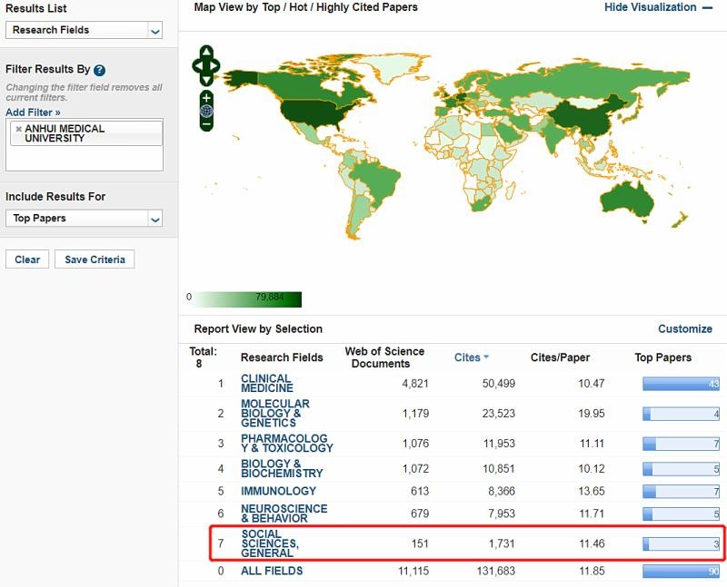 3月25日,科睿唯安公布ESI最新统计数据,我校“社会科学总论”(Social Science, General)学科首次进入ESI全球排名前1%,这是我校社会科学相关学科发展取得的重大突破。至此,学校已有临床医学、药理学与毒理学、分子生物学与遗传学、生物与生物化学、免疫学、神经科学与行为学、社会科学总论等7个ESI全球排名前1%学科,在安徽省属高校中位列第一。