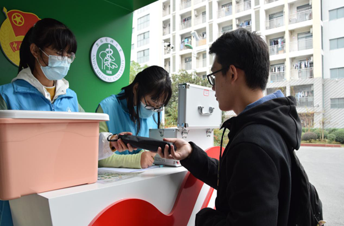 “出了宿舍楼才发现下雨了,走几步就借到了雨伞,不用淋雨去上课了,志愿服务岗亭真的给我们提供了很多方便!”