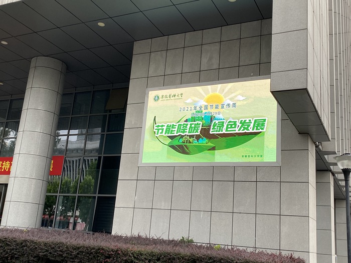 活动中,充分利用校园网、微信公众号和校园电子屏等多种宣传手段,对节能宣传周相关内容进行集中宣传,形成宣传合力,扩大宣传影响,在全校范围积极营造节能宣传氛围。精心制作主题宣传图片、宣传展板和《节能知识手册》,并在电子屏进行滚动宣传,面向全校传播绿色低碳理念,倡导绿色生活方式。学校微信公众号发布节能宣传周主题内容,向全校师生提出“低碳生活始于心,节约资源践于行”的倡议,积极贯彻绿色低碳发展理念,鼓励师生践行绿色低碳生活方式。