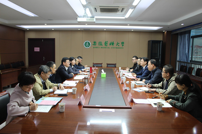 11月18日下午,合肥市第一人民医院党委书记吴冬雷,党委副书记、院长唐智国一行6人来校考察交流。校党委书记顾家山、校长曹云霞亲切会见来访客人并交流座谈。