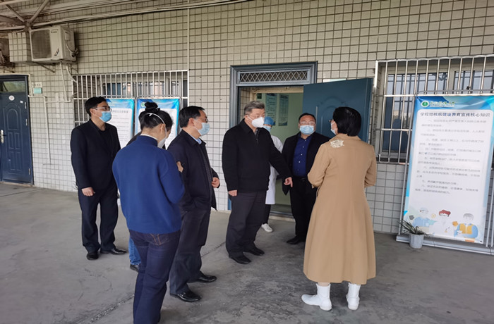 4月3日下午,合肥市委常委、副市长路军一行到我校南校区,在校园大门、医务室、食堂实地检查督导疫情防控工作。