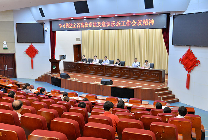 5月23日下午,学校在图书馆第一学术报告厅召开会议,学习传达全省高校党建和意识形态工作电视电话会议精神,分析校园安全稳定形势,研究部署学校党建和意识形态工作。校党委书记顾家山主持会议并讲话,全体在校校领导曹云霞、刘群英、肖圣龙、吕雄文、黄新美出席会议。