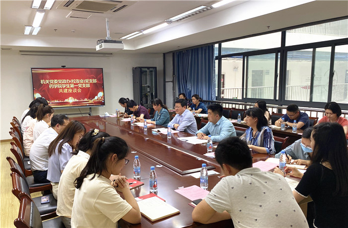 机关党委党政办(校友会)党支部与药学院学生第一党支部部分党员参加座谈。(校党政办公室 洪瑶)