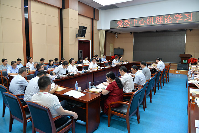 6月16日下午,校党委中心组在知行楼一楼会议室召开理论学习会,校党委中心组组长、校党委书记顾家山主持会议,校领导刘群英、梁朝朝、肖圣龙、吕雄文、黄新美及校党委中心组全体成员参加学习研讨。