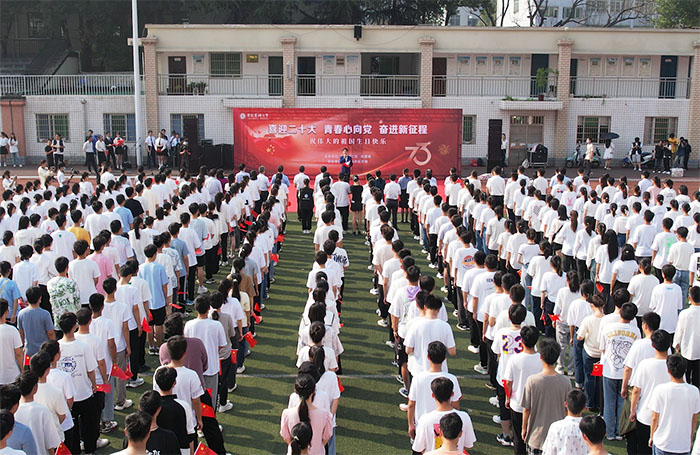晴空万里,艳阳高照。10月1日上午,我校“喜迎二十大,青春心向党,奋进新征程”——热烈庆祝中华人民共和国成立73周年升旗仪式暨“国旗下的我们”主题教育系列活动在校本部体育场隆重举行。校党委书记顾家山出席活动。学校近千名师生代表齐声高歌,为祖国母亲献上最美好的生日祝福。