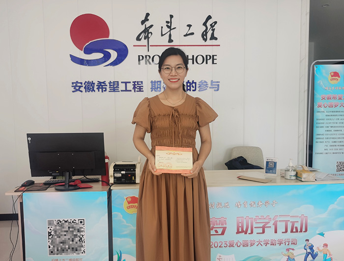 2023年,闫君丽偶然在电视上看到“圆梦大学”励志求学的故事,便多次前往希望工程进行捐资助学,奉献自己的爱心。