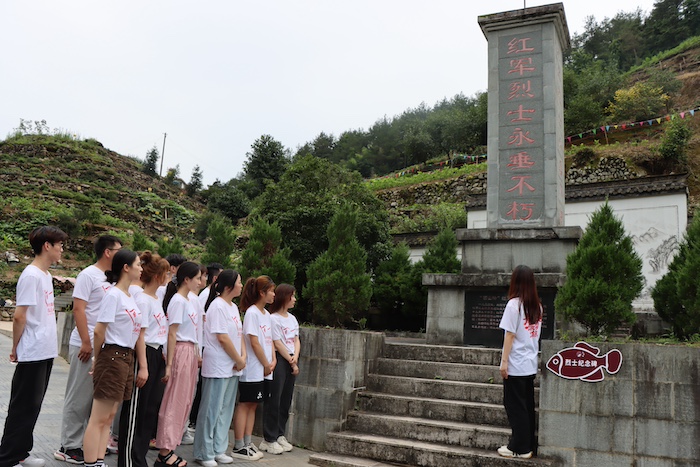 “1934年,红军北上抗日先遣队十九师三团途经汪满田村西山降时,遭遇国民党陆军四十九师围追堵截。激战中,团长王吉山等十八名红军将士壮烈牺牲。”松源桥头,苍松翠柏,汪满田红军烈士纪念碑前,实践队员认真学习红色历史,深切缅怀革命先烈,进一步感受革命胜利的艰辛历程。实践队员张无忌表示,“西山降血战”的悲壮故事让大家深受教育:“我们要坚定理想信念,传承红色基因,加倍珍惜革命先烈用鲜血和生命换来的幸福生活,努力为实现中华民族伟大复兴添砖加瓦。”
