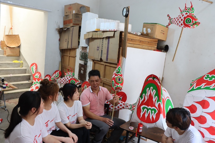 作为省级非物质文化遗产,汪满田鱼灯已有600多年历史,是徽州地区传承悠久、保存完好的传统年俗之一。在驻村工作队队长胡健的带领下,实践队员走进鱼灯工坊、汪氏宗祠、文创小店等地,学习了解鱼灯民俗的起源历史和传承发展。在县级非遗传承人汪华武家中,实践队员认真学习鱼骨架的制作过程,拿起画笔为鱼灯勾线、上色,体验非遗的魅力。“鱼灯承载着村民对国泰民安、五谷丰登、万民乐业的美好向往,对鱼灯的热爱已经融入村民的血脉之中。”谈及鱼灯民俗的文化内涵时,汪华武说道。