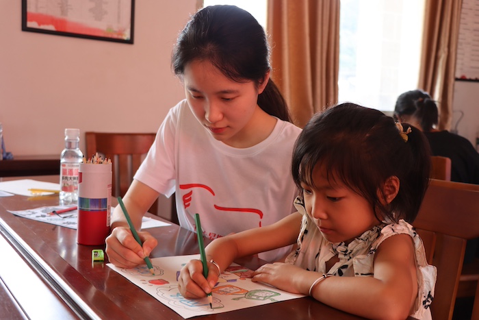 在汪满田村新时代文明实践站,结合医学生专业特色、实践队员特长以及乡村儿童兴趣爱好,实践团队为15位乡村儿童开展了为期一周的“七彩课堂”活动。“心肺复苏术(简称CPR),是针对骤停的心脏和呼吸采取的救命技术。”课堂上,付玉、朱圆圆和伙伴们对孩子们提供心肺复苏术、海姆立克急救法、七步洗手法等医学健康知识,以及防溺水、交通安全、食品安全等安全知识的普及宣传,还进行了学业辅导以及绘画、剪纸、书法、音乐等兴趣培训。在欢声笑语中,实践队陪伴乡村儿童度过一段难忘而愉快的时光,受到当地群众的热烈欢迎和一致好评。“亲爱的大哥哥大姐姐们,谢谢你们给我带来快乐,期待你们还会来。”10岁的汪劭琦在送给实践团队的信中这样写道。