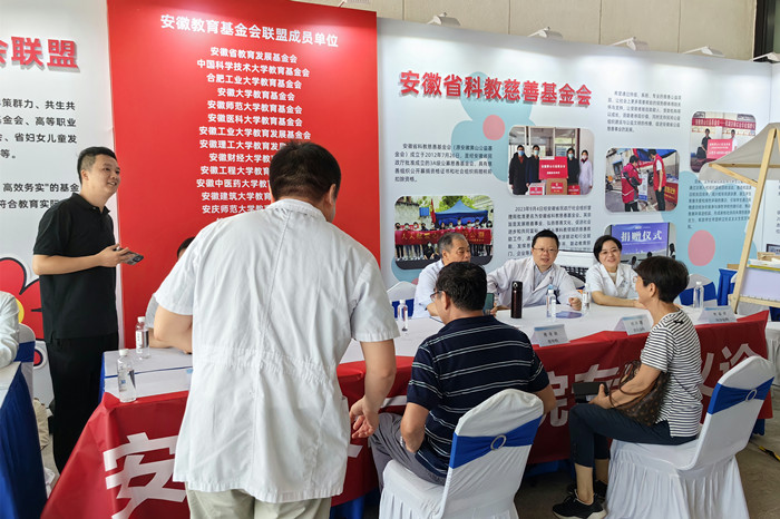 9月5日至7日,作为安徽慈善联盟发起单位,校基金会参加了安徽省慈善总会与安徽慈善联盟联合主办的“善行三十载、爱心暖江淮”全省慈善项目交流展示活动。在第二附属医院和校实验教学中心的大力支持下,基金会将义诊、现场急救教学活动与安医特色公益项目展示融合在一起,积极与游客互动,不断提升 “安医公益”的品牌影响力。中华慈善总会副会长孙少华、副省长张曙光、省政协原副主席李宏塔、省民政厅厅长余向东、省慈善总会会长刘莉、教育发展基金会理事长王佩刚参观校基金会展区并慰问了工作人员。