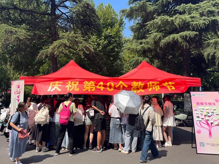 9月10日,教职工心理健康服务中心联合校工会,开展“心向暖阳,师恩难忘”特色主题活动,向辛勤耕耘在教育一线的老师表达节日祝福。全校近400名师生参与本次活动。