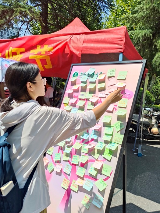 本次活动包含趣味心理知识问答、情绪转盘及温馨告白等多个环节。活动组织者利用知识卡片向现场参与者提问,带领师生快速掌握心理学常识,感受心理学魅力。转动情绪转盘的过程中,积极阳光的情绪在欢声笑语中传递,消极忧郁的负能量在互动交流中消散,参与者体验到情绪管理的艺术。活动现场的告白板是师生情感交流的媒介,“感恩老师的付出”“老师辛苦啦”“师者若水,润物无声,祝老师学术长青,好运相伴”等一句句饱含深情的祝福,不仅是对教师辛勤付出的回馈,也是学生感恩之心的生动诠释。