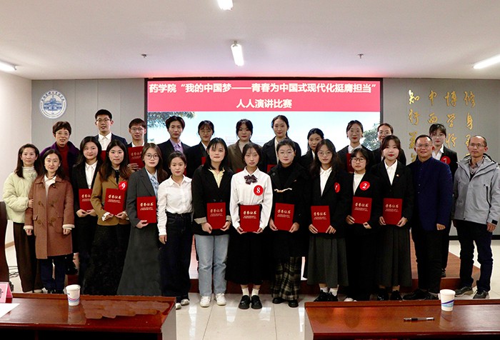 11月28日晚,药学院“我的中国梦——青春为中国式现代化挺膺担当”人人演讲比赛在知行楼B1604报告厅举行。来自校关工委、校团委、马克思主义学院的专家教授,以及药学院2024级本科生班主任代表受邀担任比赛评委。