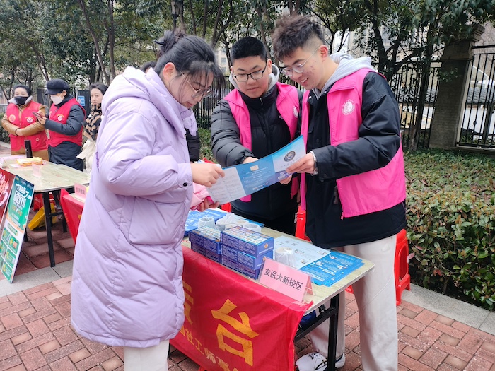义诊进社区,服务暖民心。在肥西县肥光社区,学院师生开展了一场健康义诊惠民生志愿服务活动。活动现场,同学们有条不紊地为居民量血压、测血糖,并发放慢性病防治手册,耐心细致普及健康知识,累计服务老年人超200人次。为提升群众的电信诈骗防范意识,志愿者们还精心准备了情景剧演示和案例讲解,生动形象地揭露新型诈骗手段,帮助居民筑牢电信诈骗的“防火墙”。现场还设置了磨刀、环境清洁等便民服务区域,贴心的服务赢得社区居民的一致赞誉。社区居民李奶奶感动地说:“这些孩子实在是太贴心了,就像我们自己的家人一样,真真切切地把雷锋精神带到了我们家门口!”
