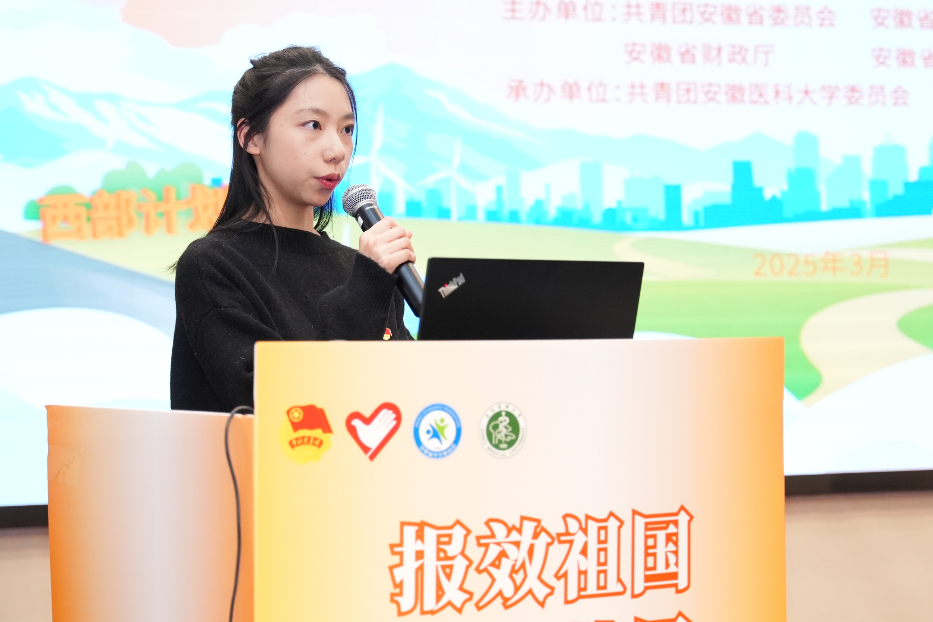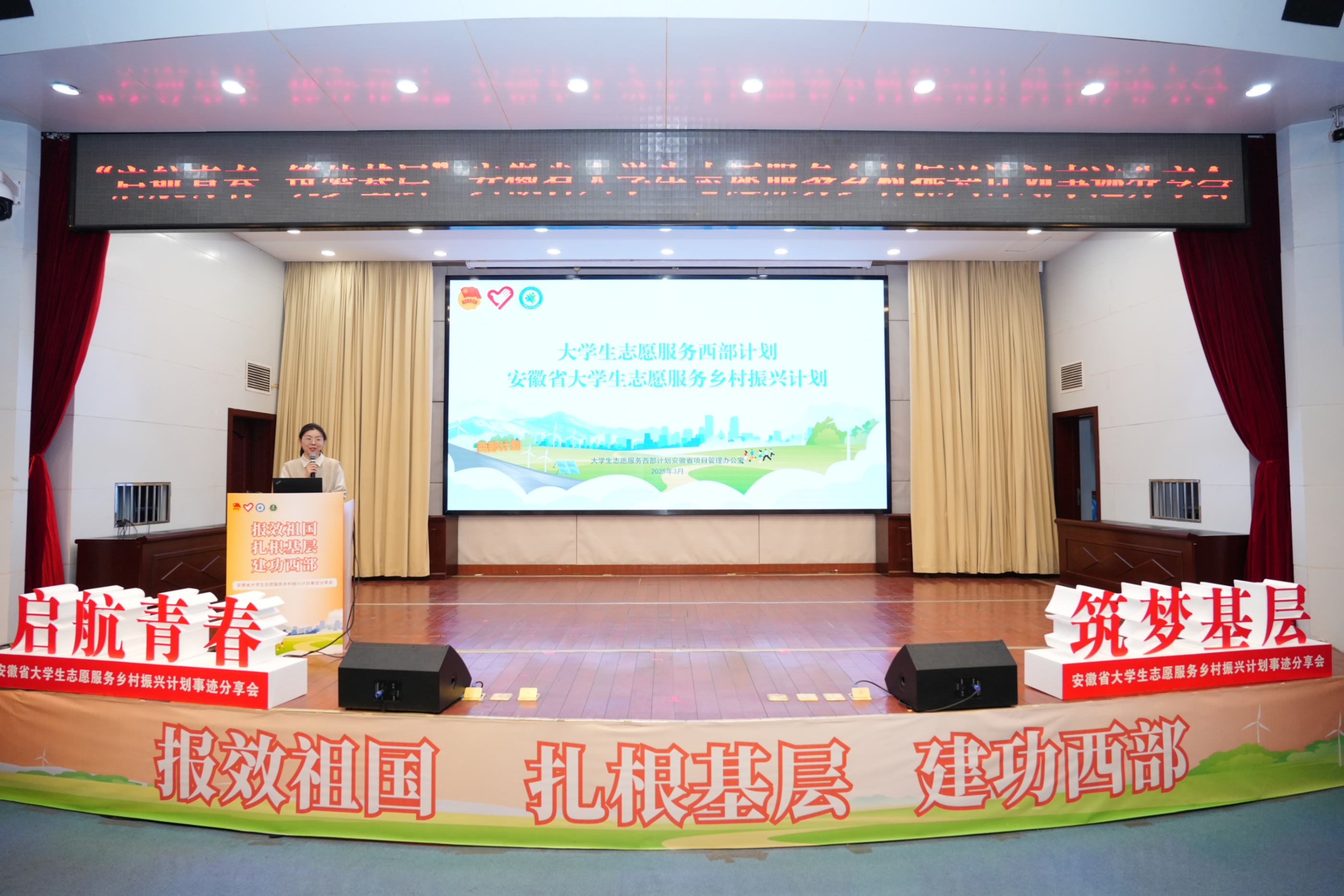 分享会上,播放了大学生志愿服务西部计划主题曲和微电影《到西部去》,发布了安徽省大学生志愿服务乡村振兴计划宣传片《逐梦皖美乡村 绽放青春芳华》。7名大学生志愿者代表依次向大家作事迹分享,我校精神卫生与心理科学学院2024届毕业生叶子馨作为其中一员向大家讲述自己的志愿服务经历。西部计划安徽省项目办负责同志就2025—2026年度大学生志愿服务西部计划、安徽省大学生志愿服务乡村振兴计划作情况介绍,并与现场师生展开交流,就相关问题作解答。分享结束后,与会领导为分享团成员颁发实践证书并合影留念。