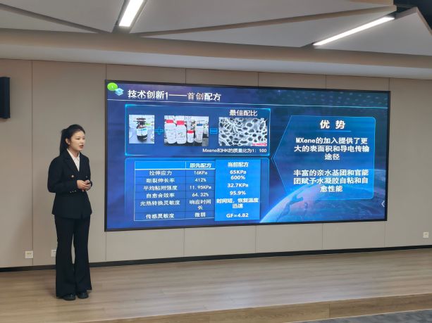 决赛现场以路演和现场答辩相结合的方式展开,参赛团队从研究背景、研究内容、先进性与创新性、研究成果与现实意义等方面,通过PPT汇报、实物展示等方式呈现。答辩环节,参赛者立足项目特色,将理论与实践结合,用简短的语言回答问题,评审专家就如何进一步完善项目提出意见和建议。
