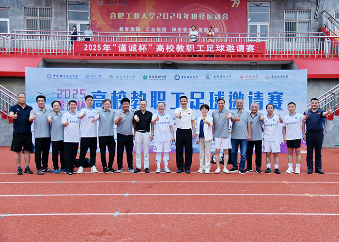 6月7日至14日,2025年“谨诚杯”高校教职工(50 岁以上)足球邀请赛在合肥工业大学火热举行。校党委书记王琦出席开幕式并观摩比赛,校长翁建平出席开幕式并参加比赛。我校教职工足球队凭借顽强的斗志与精湛的球技,最终斩获第五名的优异成绩。