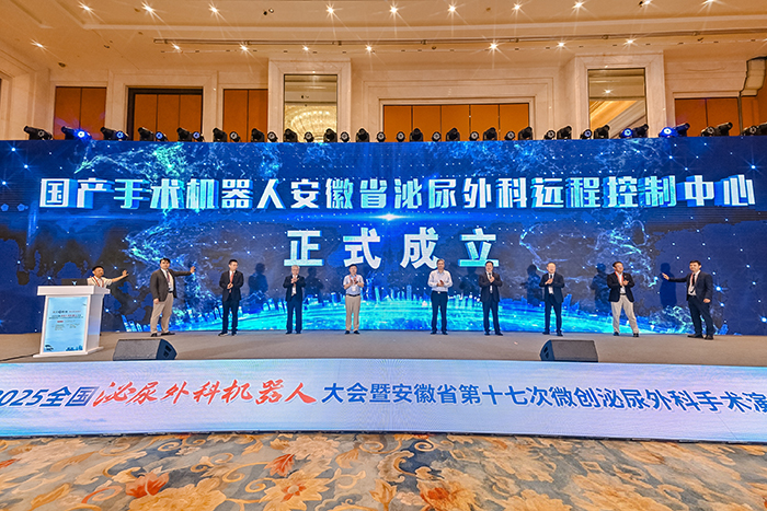 开幕上举行了国产手术机器人安徽省泌尿外科远程控制中心成立揭牌仪式,并发布“国产单孔机器人辅助根治性前列腺切除术专家共识”,与会领导及多位专家共同见证。