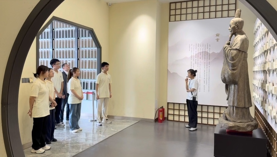 豆乡溯源悟匠心,楚馆寻根强自信。从淮南王刘安炼丹偶得豆腐的传说,到现代淮南豆制品产业化发展的成就,实践团在寿县淮南豆腐主题文化园内体验“豆腐之路”。在老师傅的指导下,队员们亲身体验了点浆、压模、切块等传统工艺制作豆腐的环节,直观感受古法技艺的匠心独运。“八公山豆腐不仅是一道美味,更是传统工艺的文化传承。希望你们可以把家乡豆腐文化一直传承下去。”老师傅的嘱托让队员们深刻感受到非遗文化的璀璨和文明传承的生生不息。在安徽楚文化博物馆,队员们参观了陶器、青铜器、漆木器等珍贵文物,了解了楚国的历史脉络、文化特征与艺术精神,感受到楚文化“尚武崇礼、纵横智慧、文艺繁盛”的独特风貌,被楚文化所展现出的生命力、创造力和融合力深深打动,进一步增强了文化自信和历史责任感。